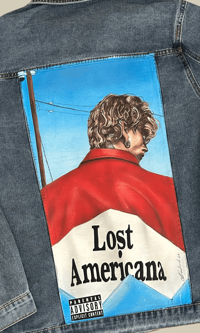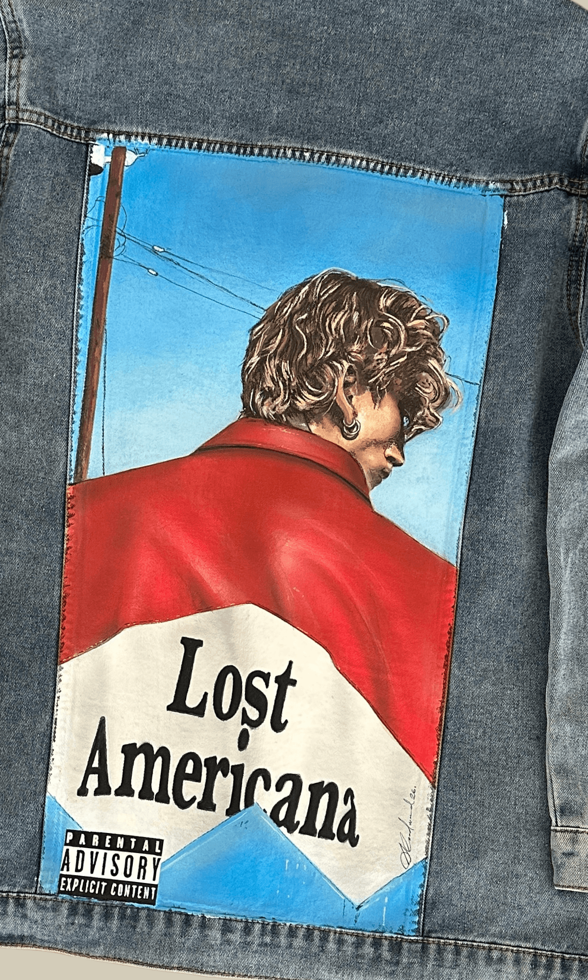 Customer wanted two jackets with the Lost Americana Album cover on to them customer supplied her own jackets Spot the Difference