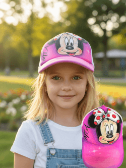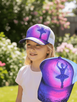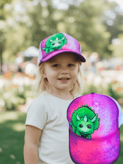 Dinosaur on pink truckers capStencil cut by circuit machine