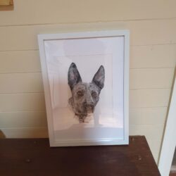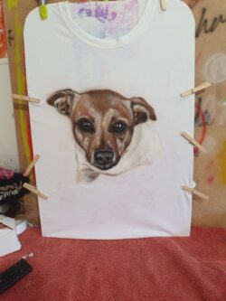 For My sons friend Maddie and her Family Christmas 2023 two portraits and one create your own t shirt . my son James said the customer cried when she saw her t shirt having her beloved pet dog Chai on a tshirt . Portraits are of billie and Slim . The blue healer is slim and the little white dog is billie